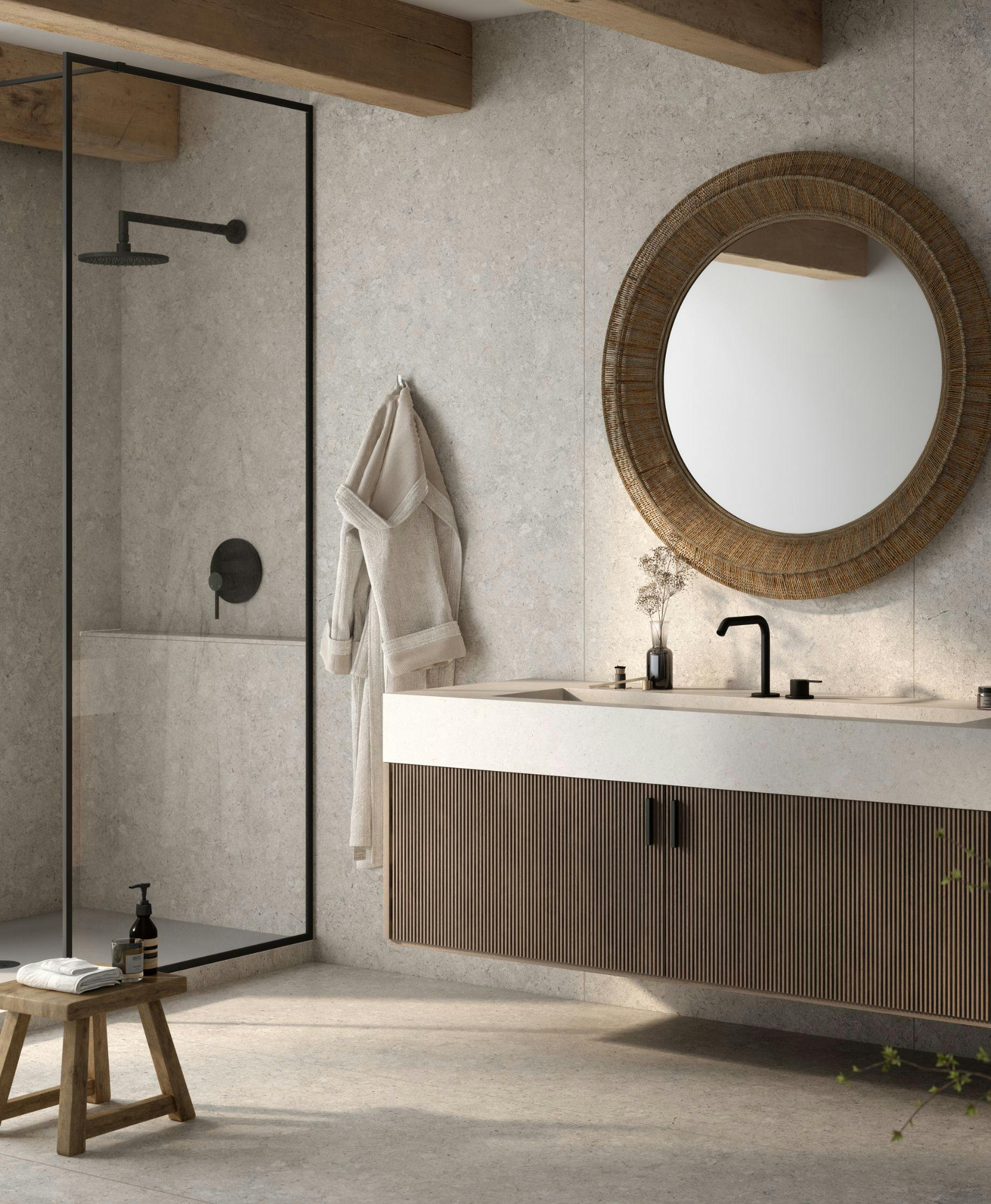 Modeli i venave të kësaj ngjyre rikrijon travertinin italian, duke i dhënë një bukuri dhe rezistencë të pakrahasueshme, perfekte për një stil rustik dhe natyror.