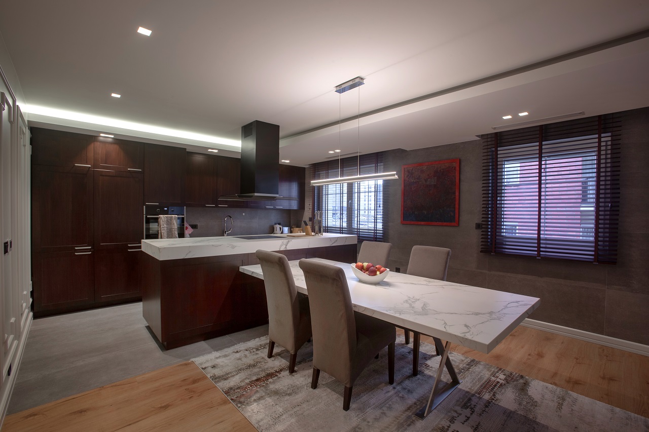 Kuarcit i bardhë elegant dhe transparent, i karakterizuar nga një sfond jashtëzakonisht të bardhë me vena të holla bezhë dhe hiri.